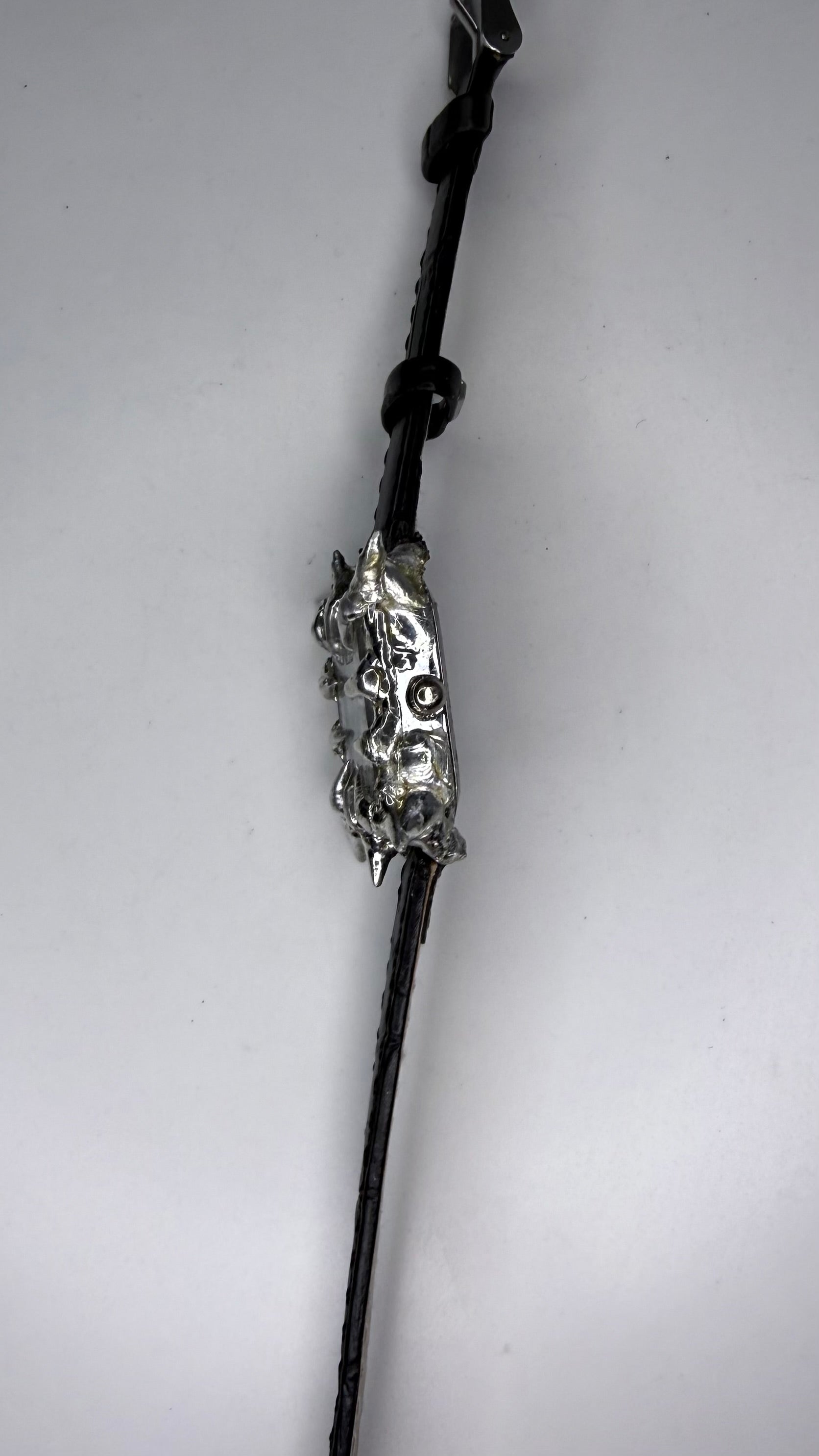 Black faux leather spiked watch