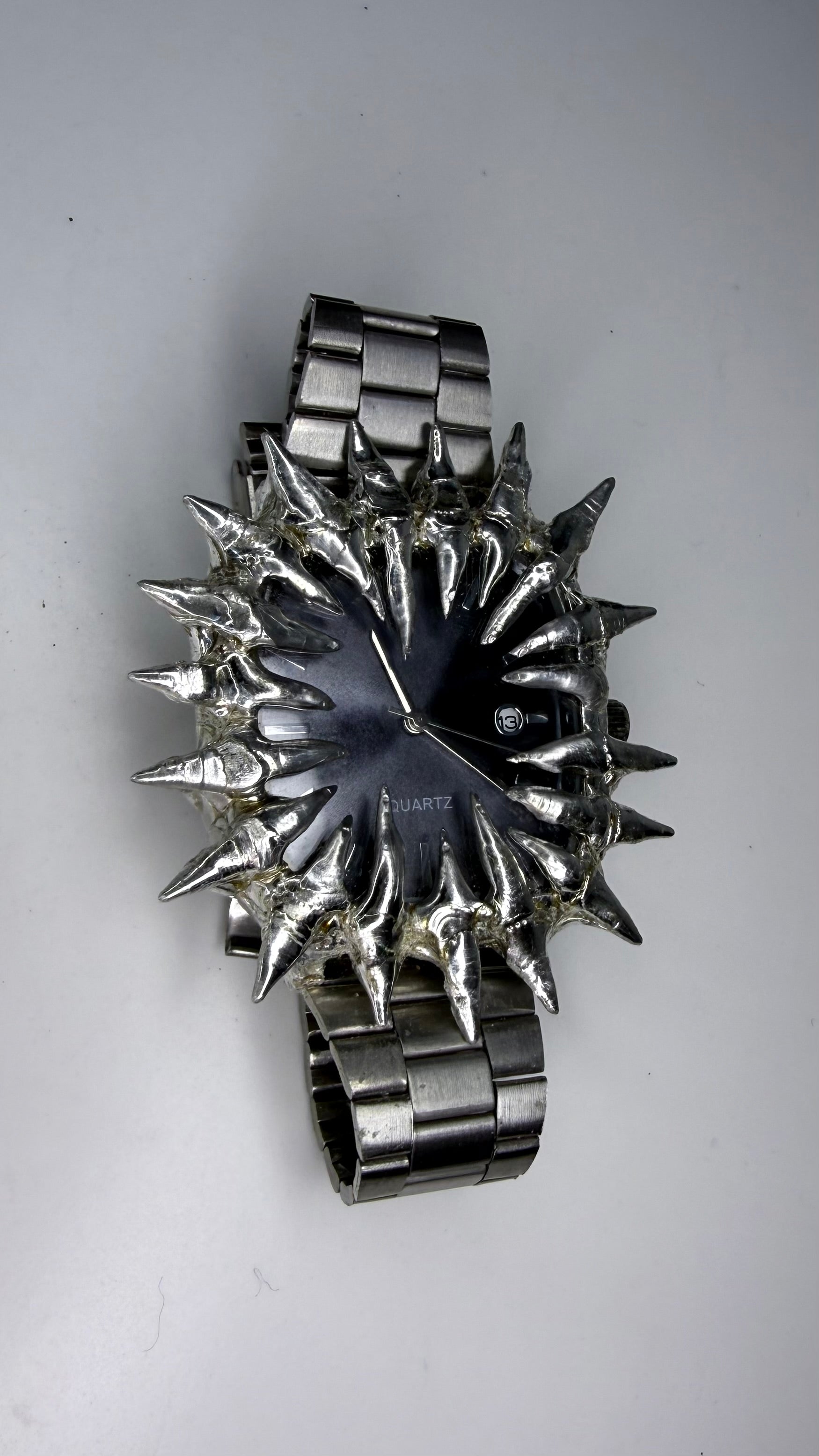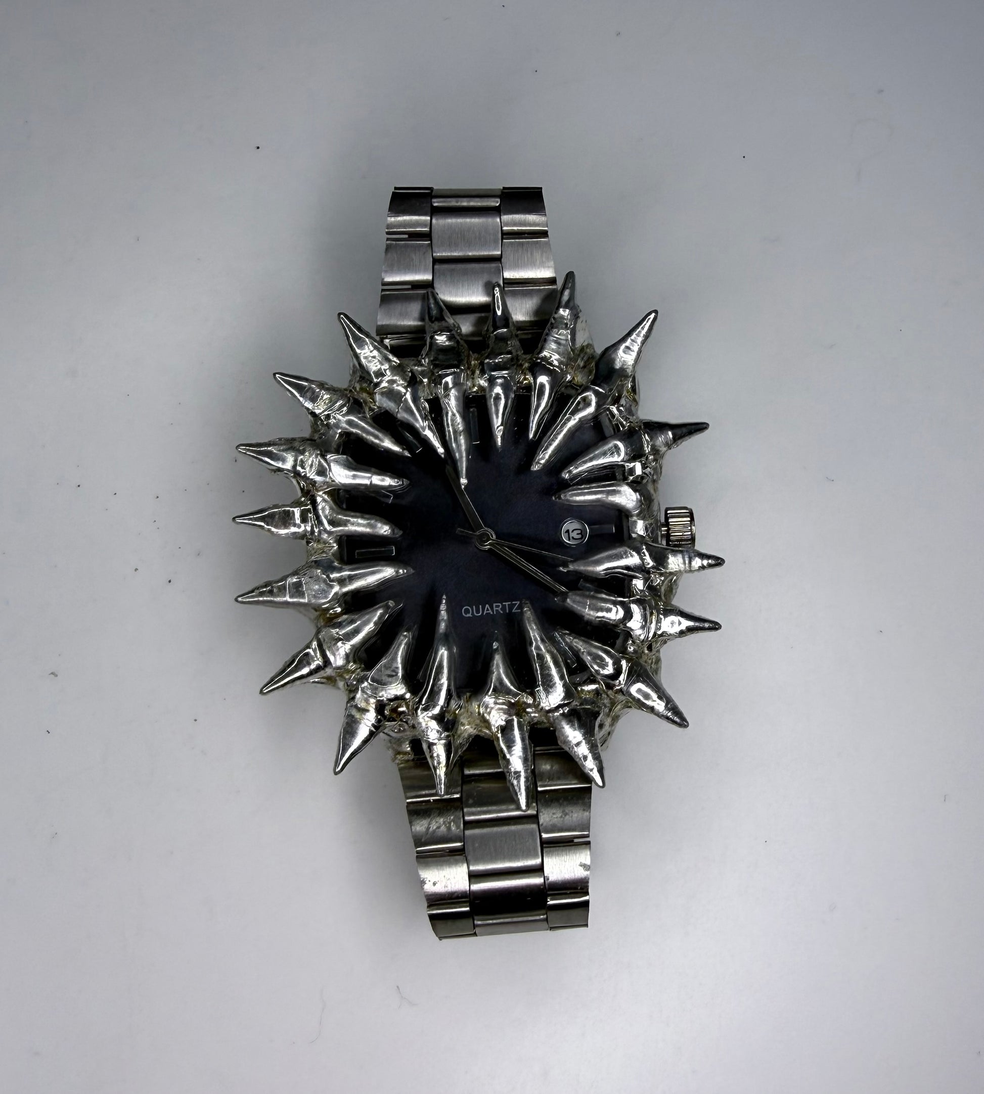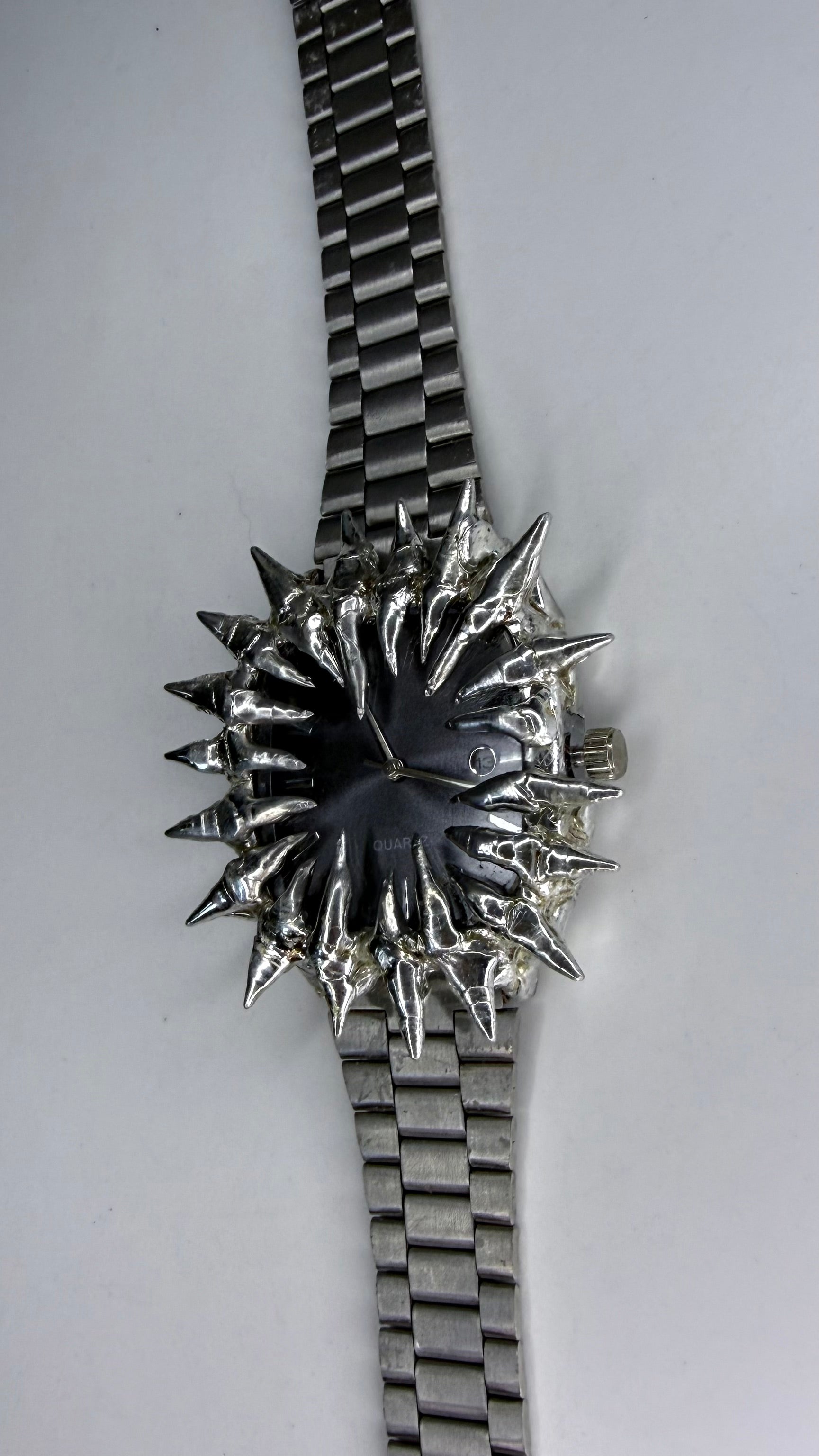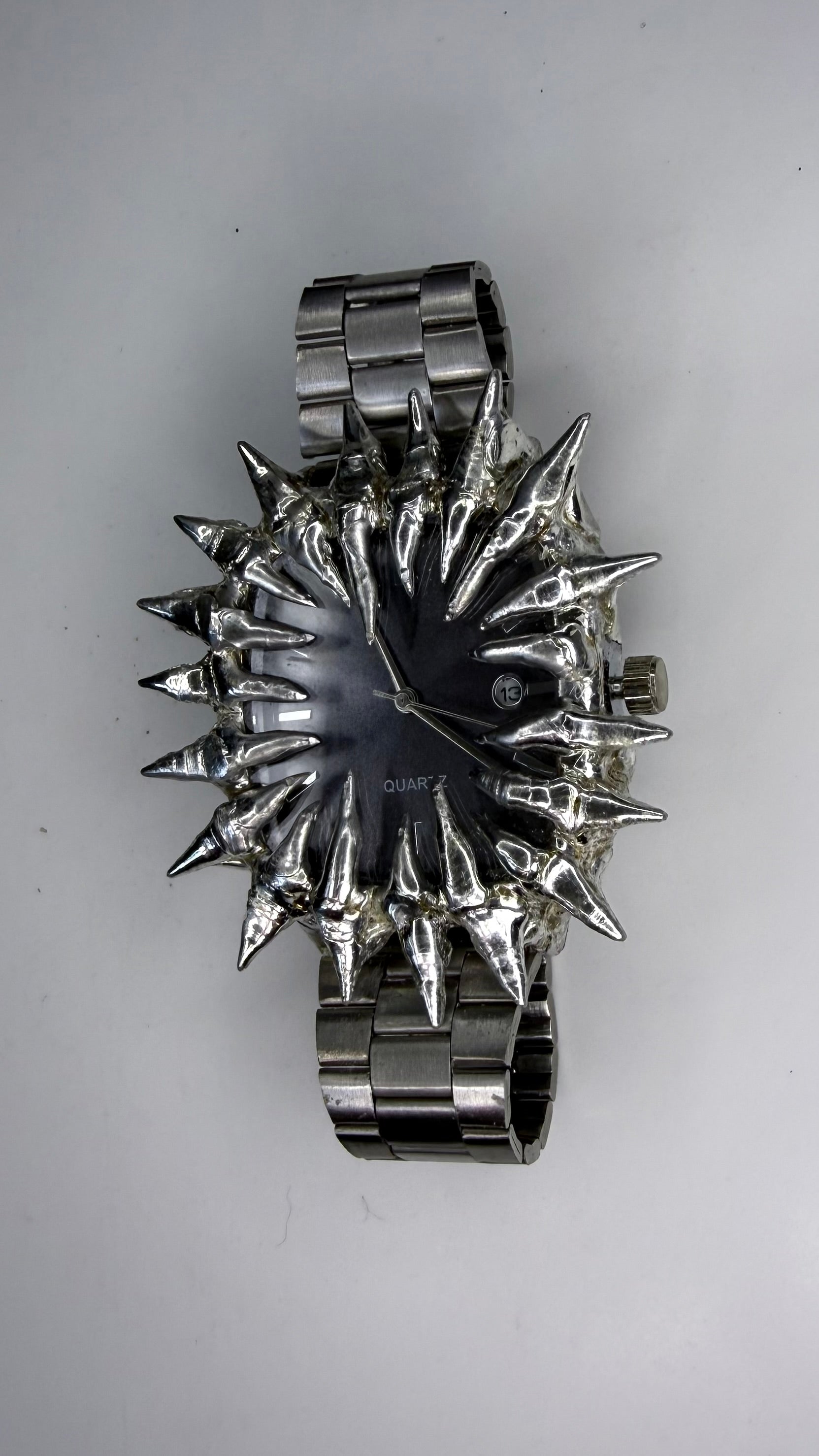 Handmade spiked black stainless steel watch
