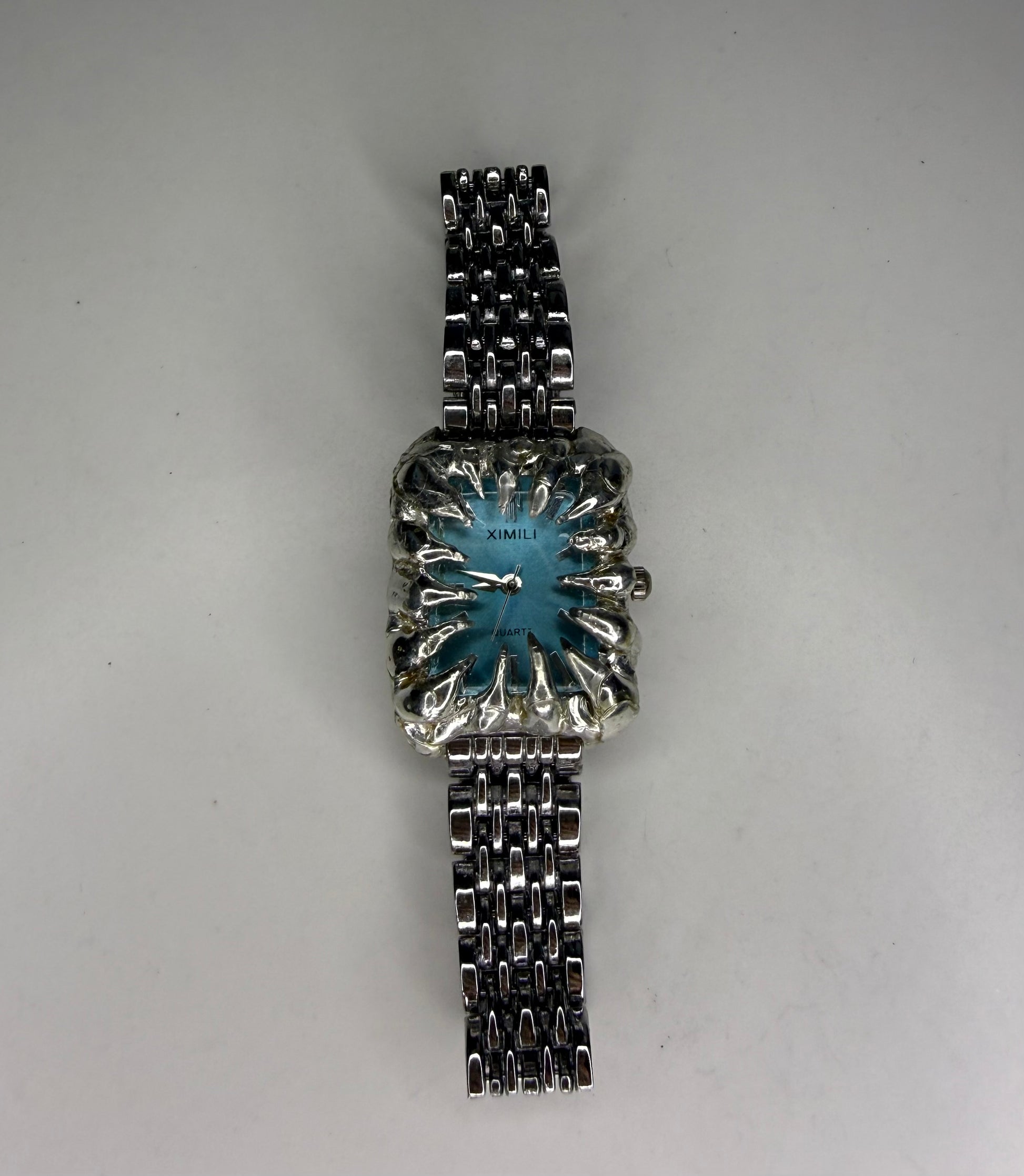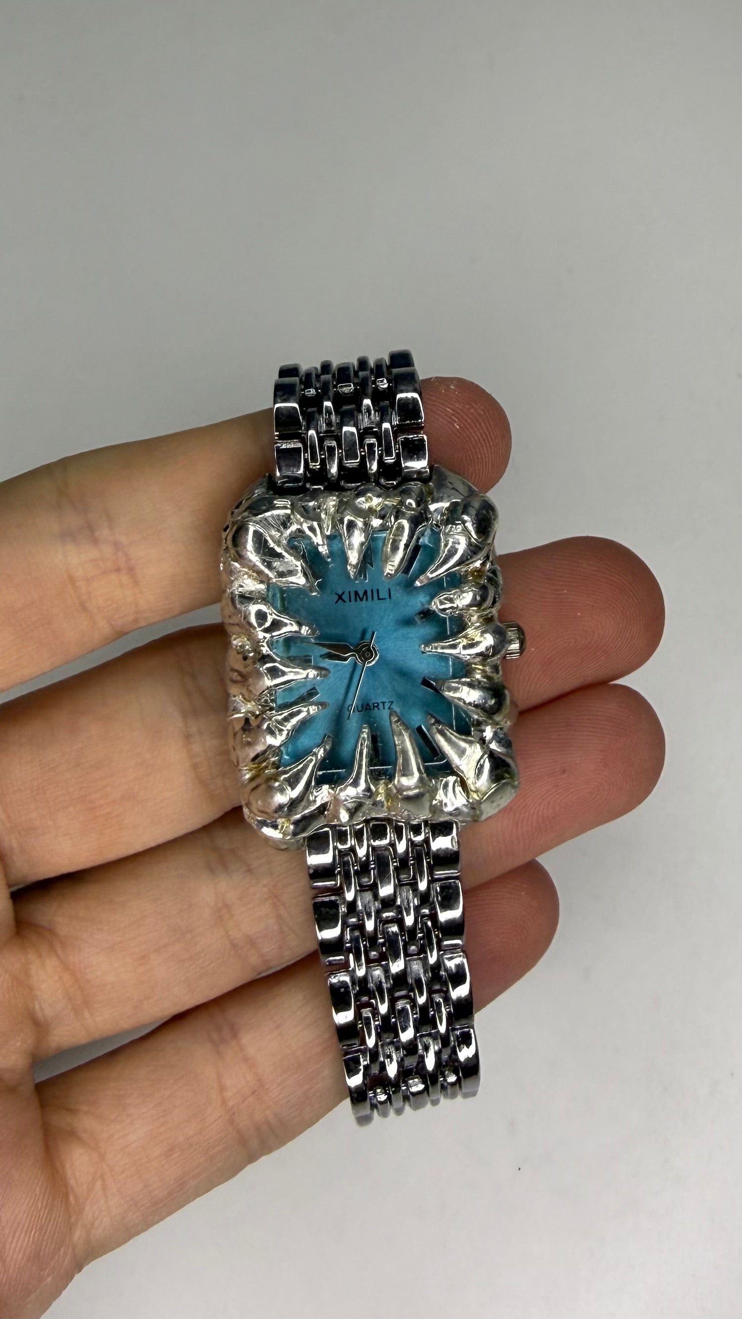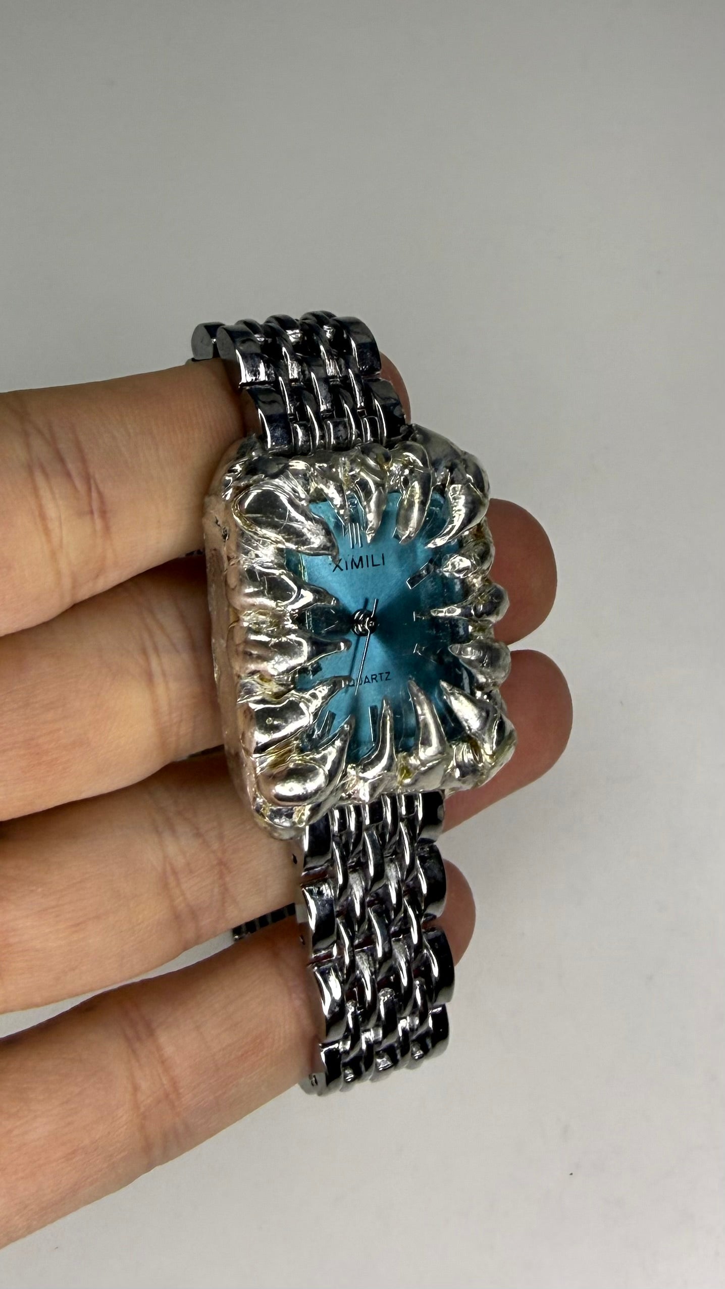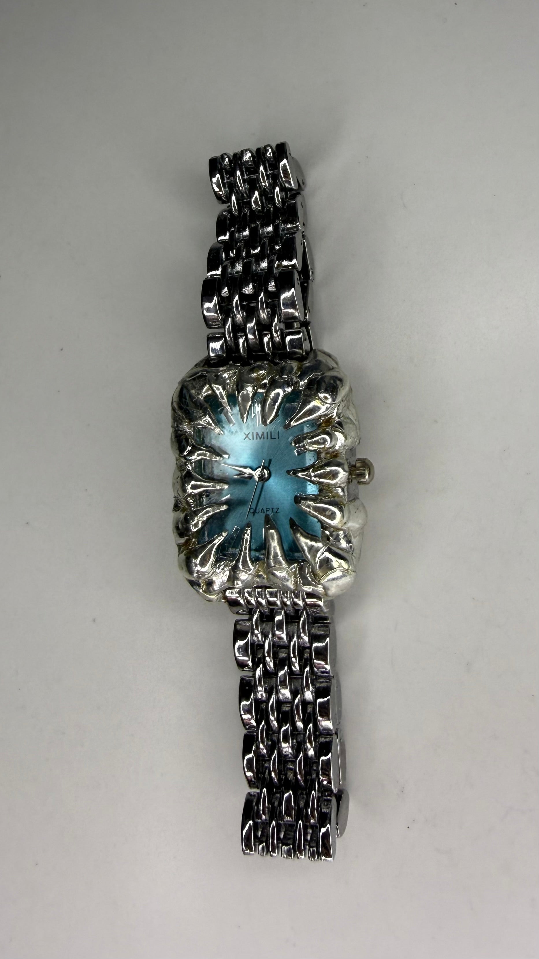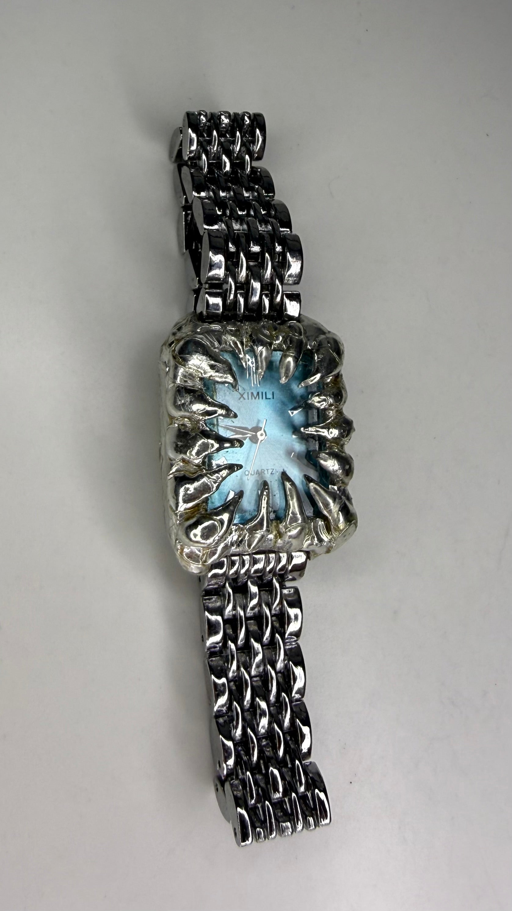 Handmade blue spiked stainless steel watch