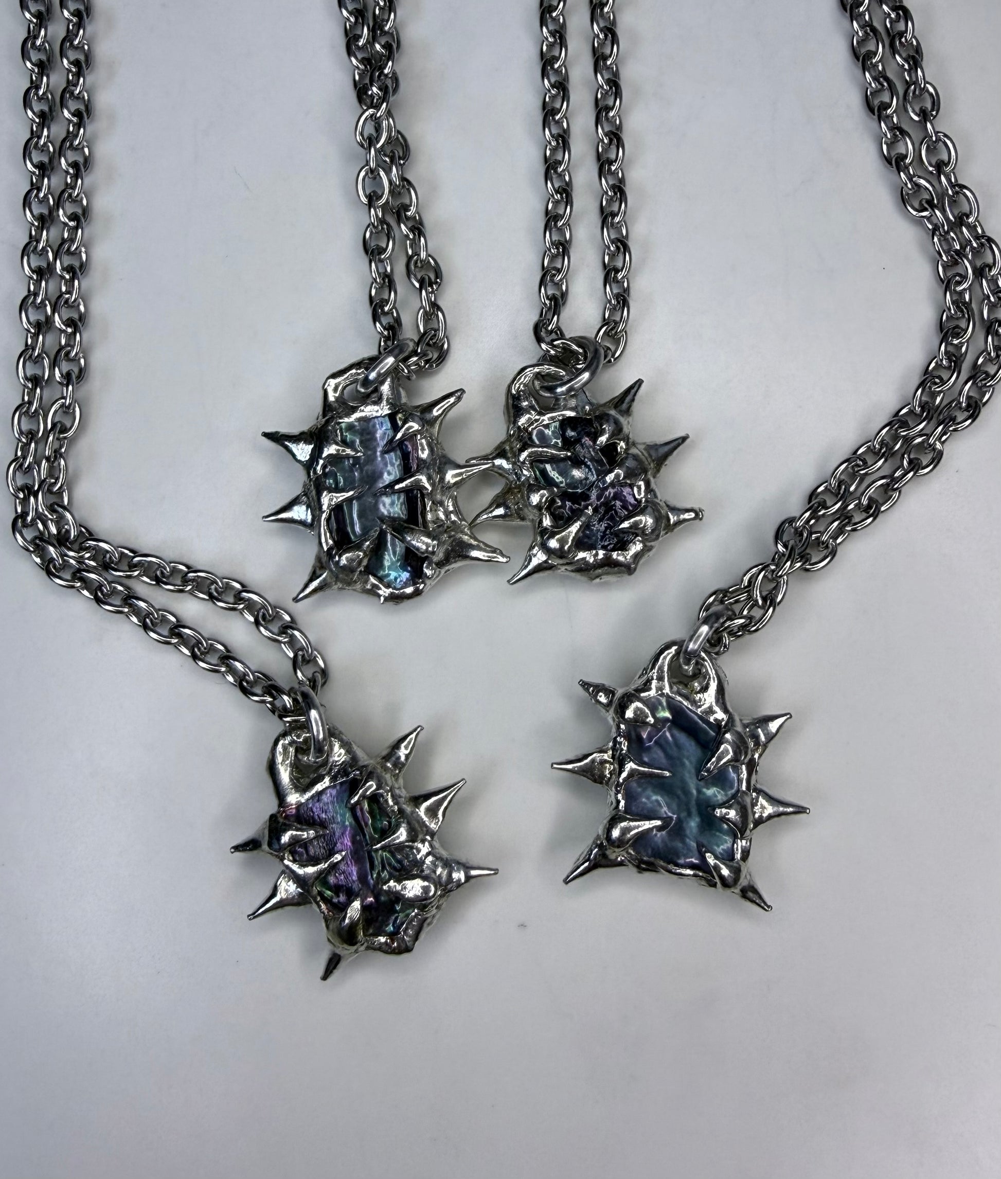 Handmade spiked dark freshwater pearl necklaces, stainless steel chain