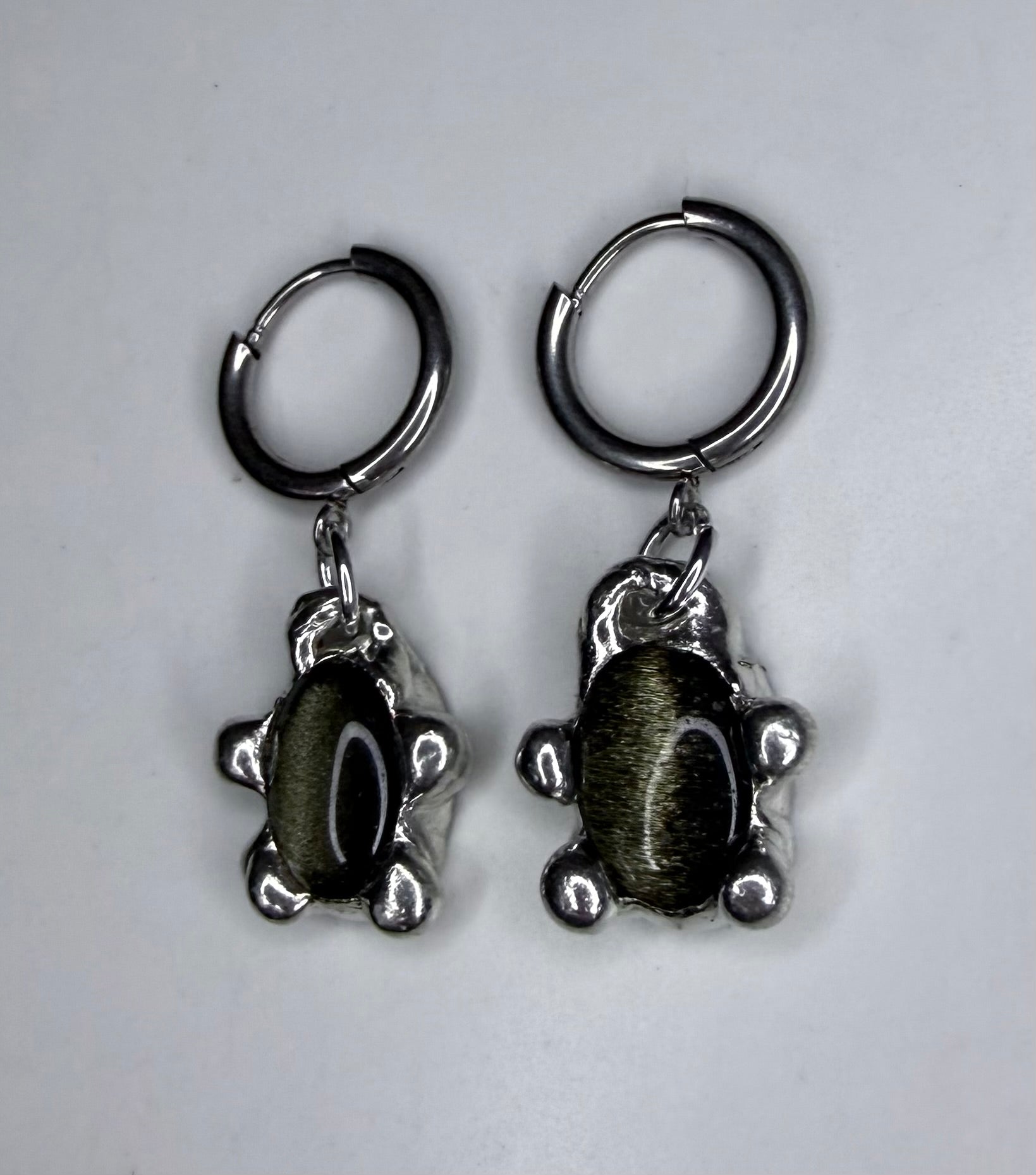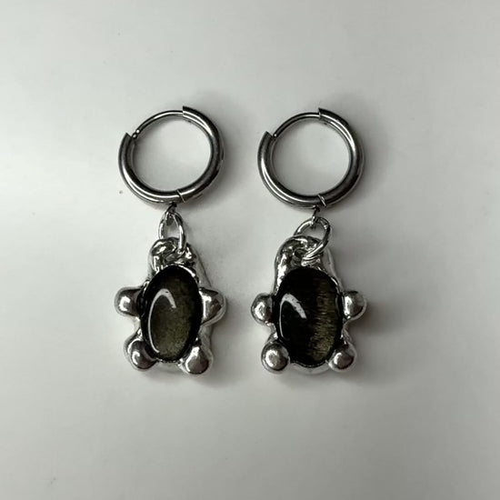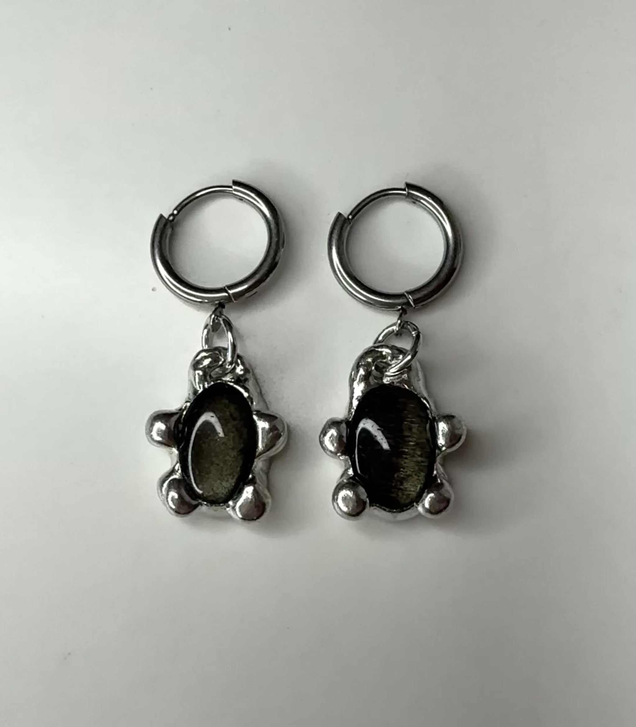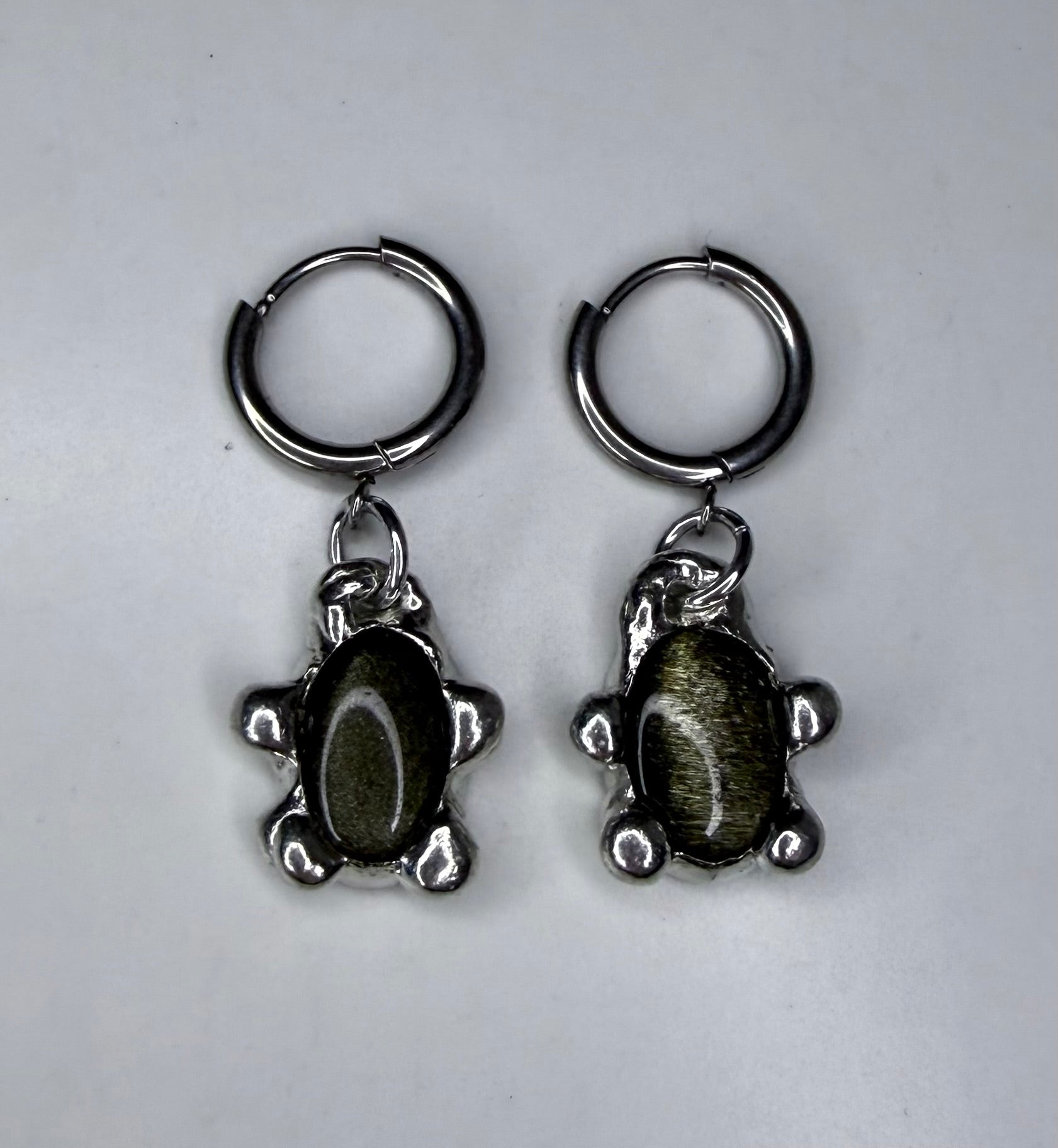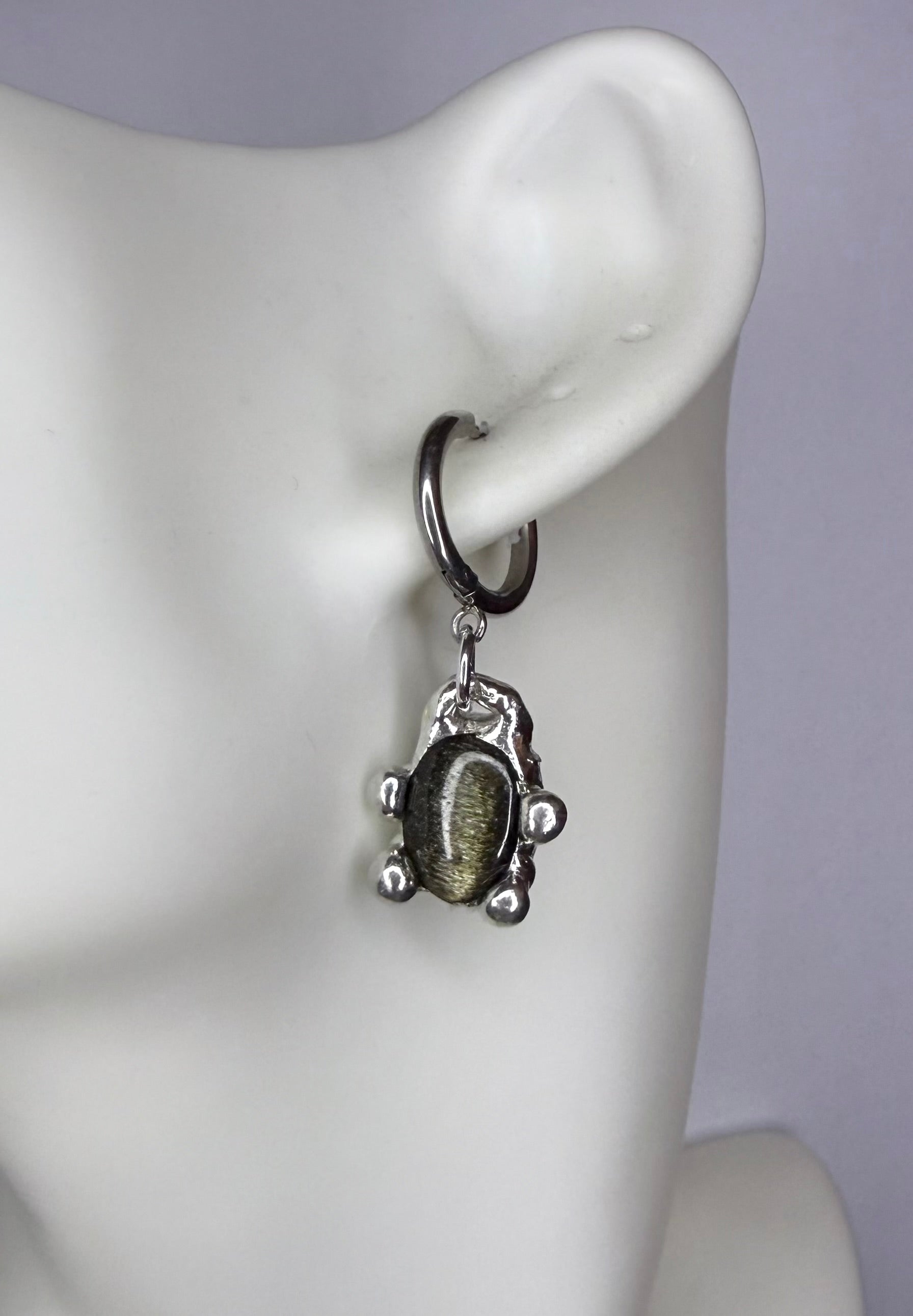 Golden obsidian earrings with beautiful golden sheen, stainless steel hoops