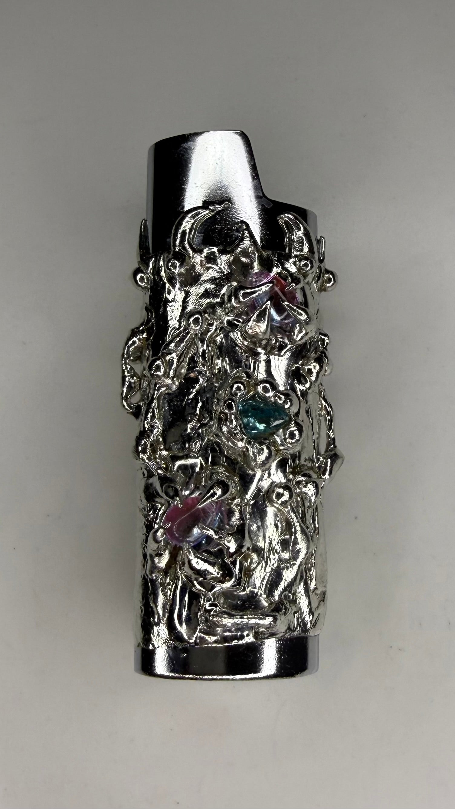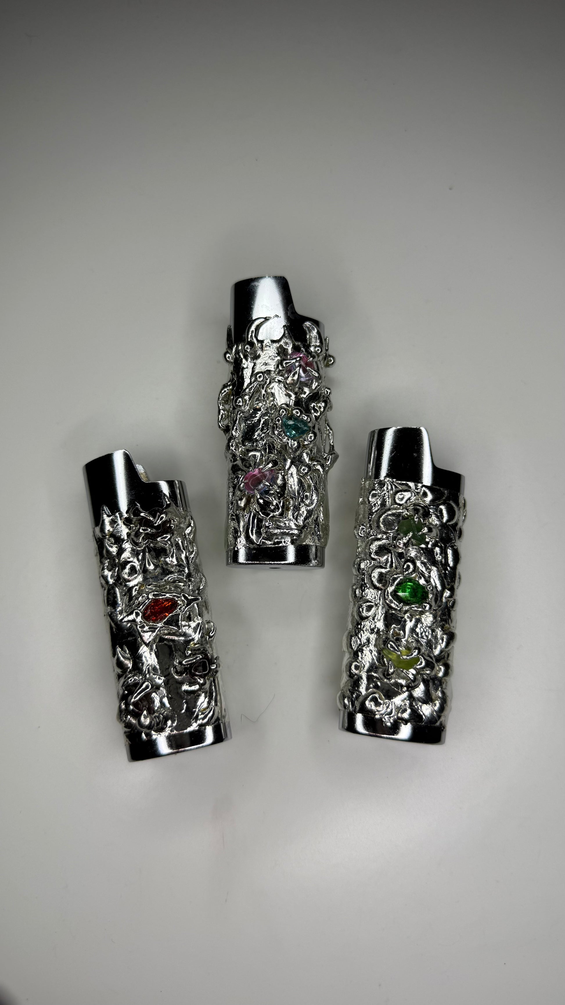 Handmade unique lighter cases featuring unique designs, cubic zirconias and coloured pearls