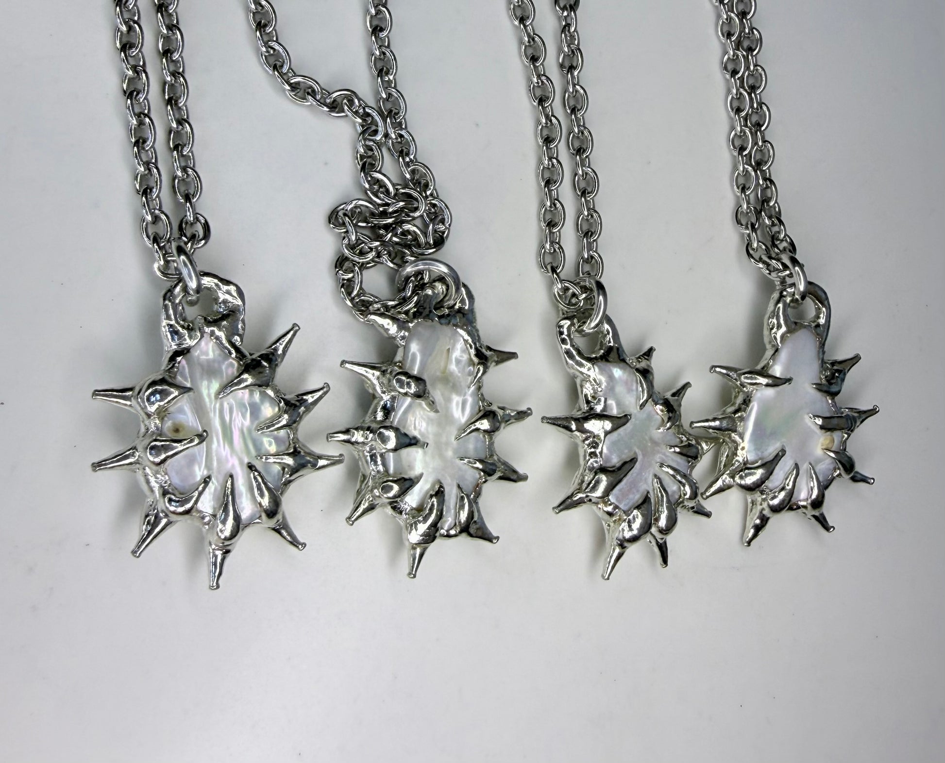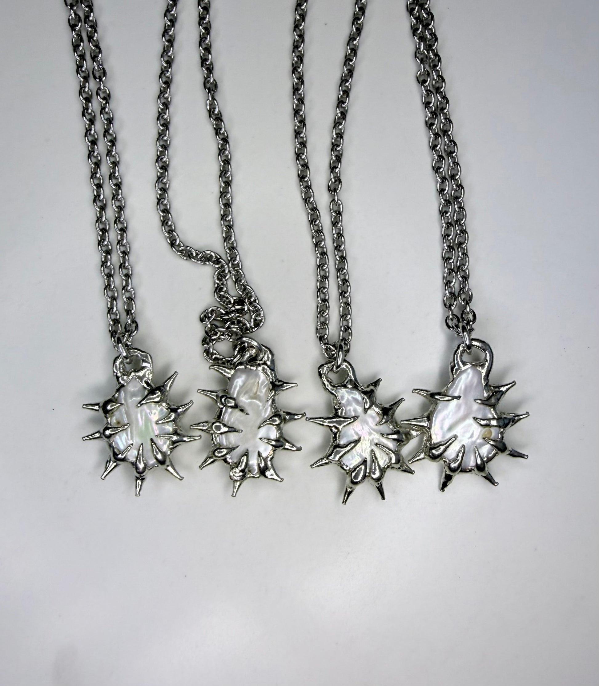 Beautiful and unique teardrop freshwater spiked necklaces - stainless steel chain