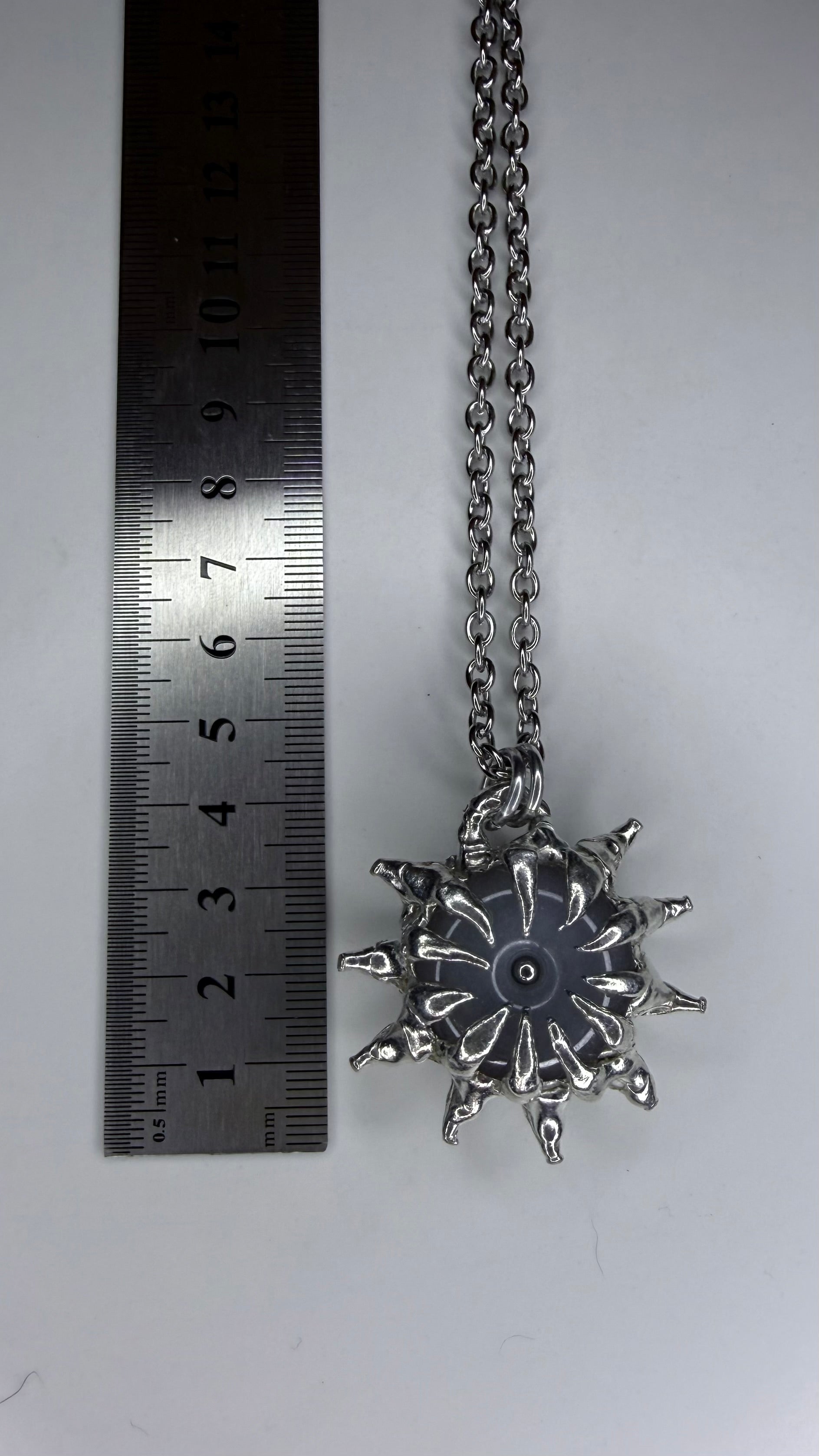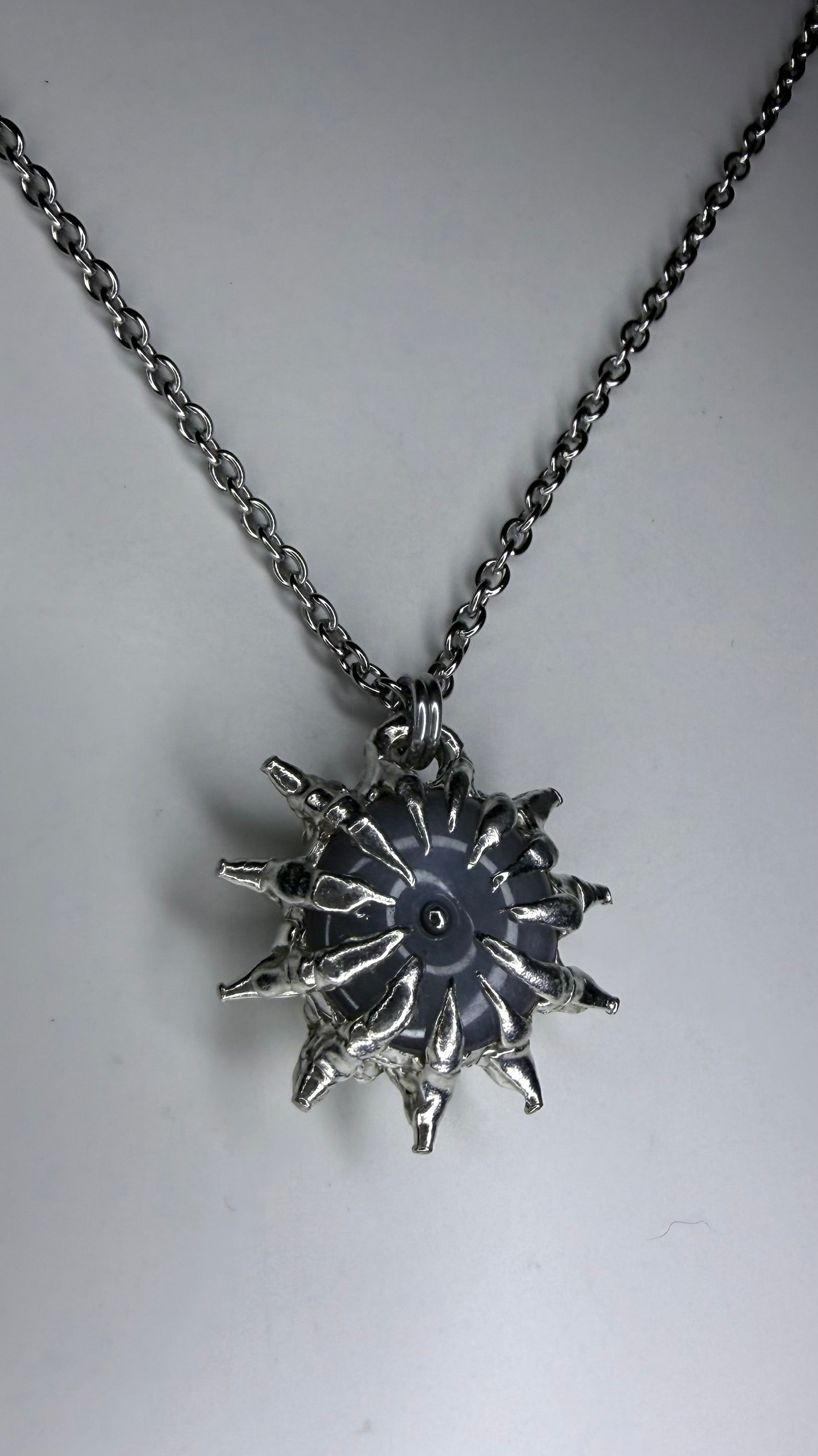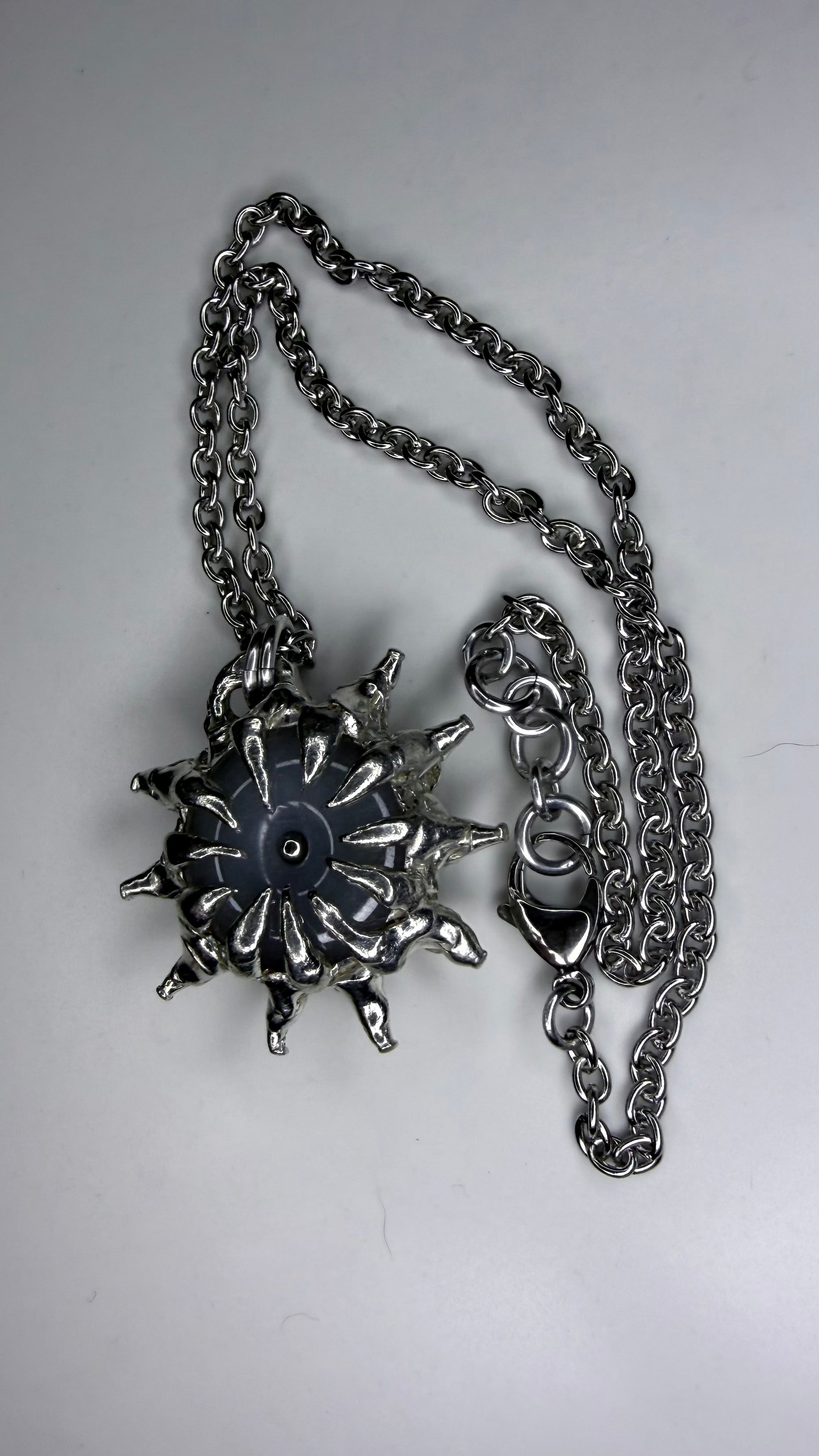 A beautiful double spiked white jade necklace, stainless steel chain